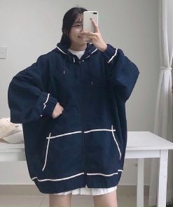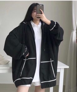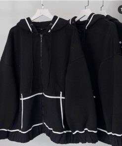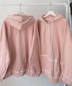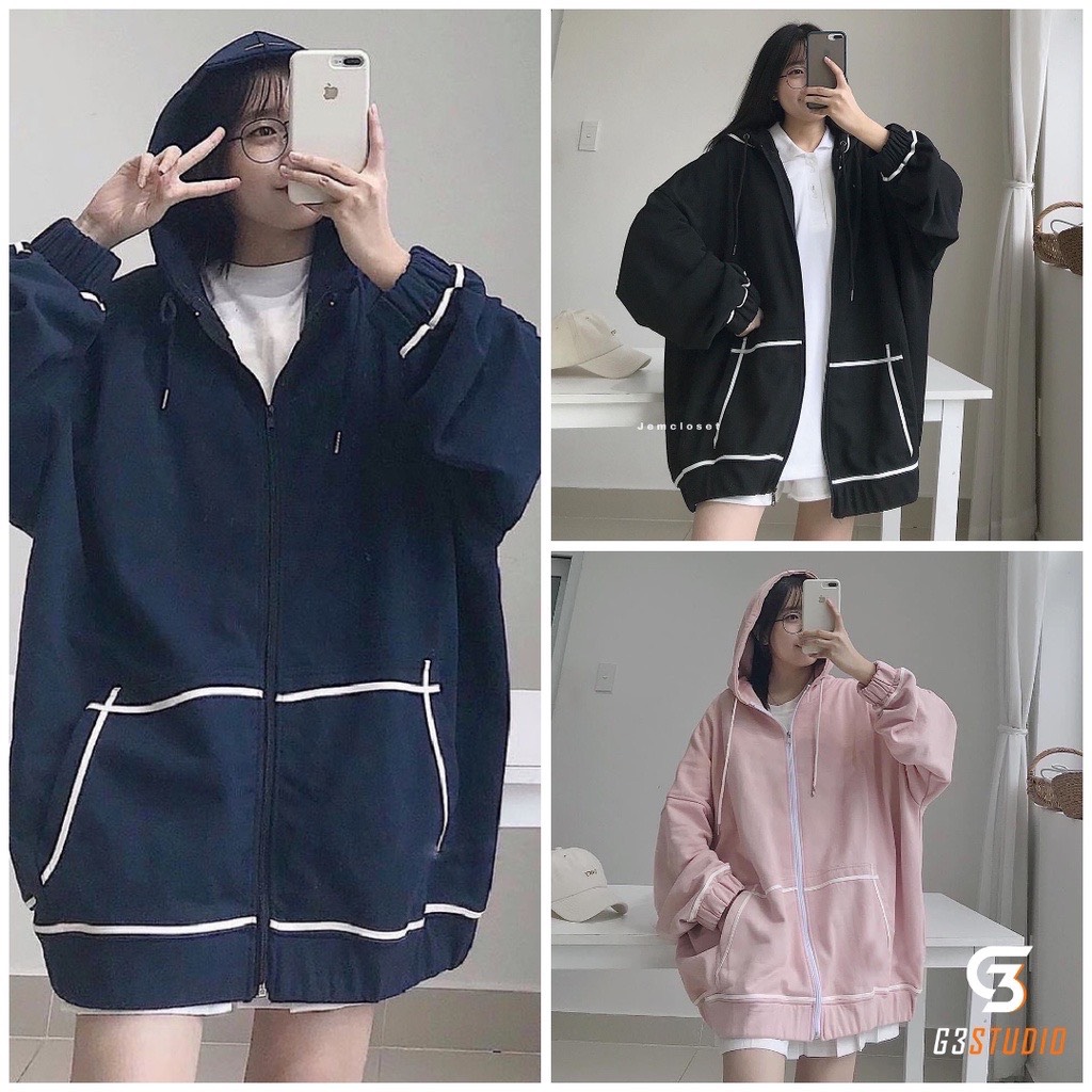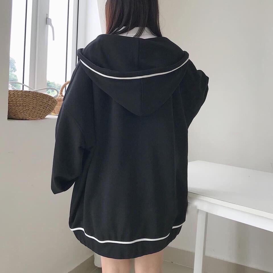 Áo Khoác Hoodie Zipper Kẻ Viền Túi Nữ –