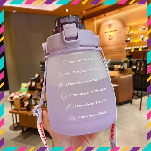 Bình Nước Chia Vạch 1300ml có dây đeo kèm sticker ngẫu nhiên