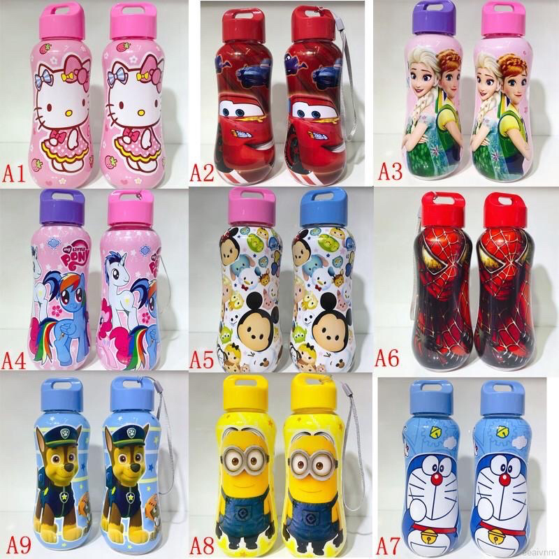 Chất liệu nhựa an toàn ( không ống hút). có dây treo. dung tích 350ml . Mẫu siêu cưng dành cho các bé