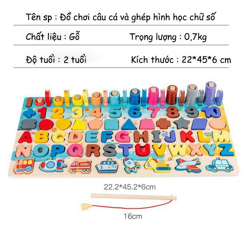 Bộ Đồ Chơi Câu Cá Gỗ 6 in 1 Cho Bé (Bảng lớn 6 dòng)