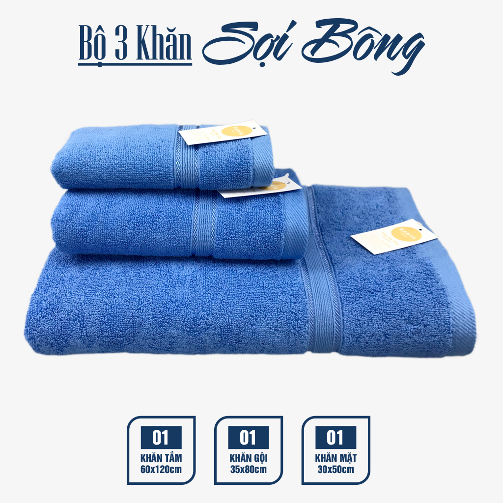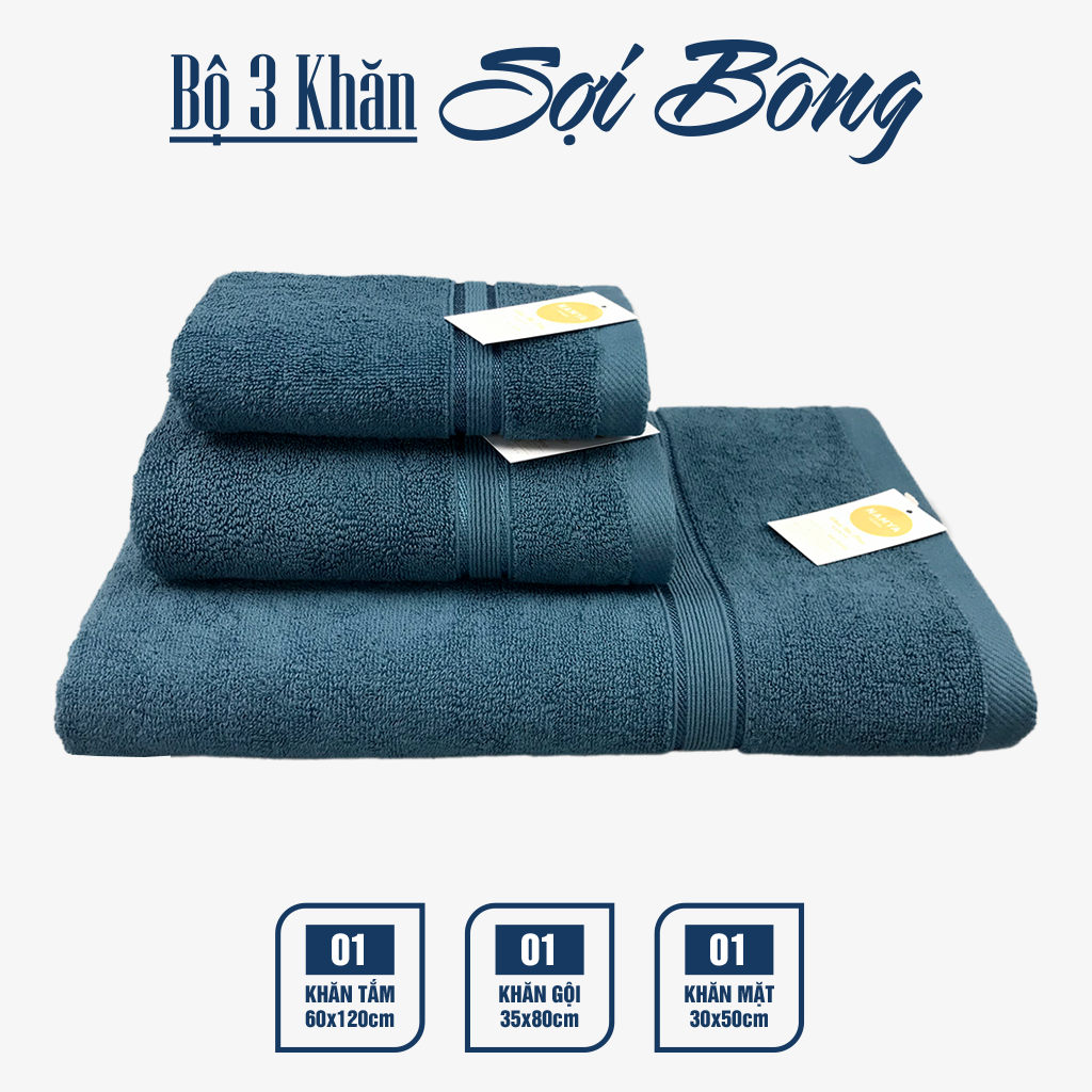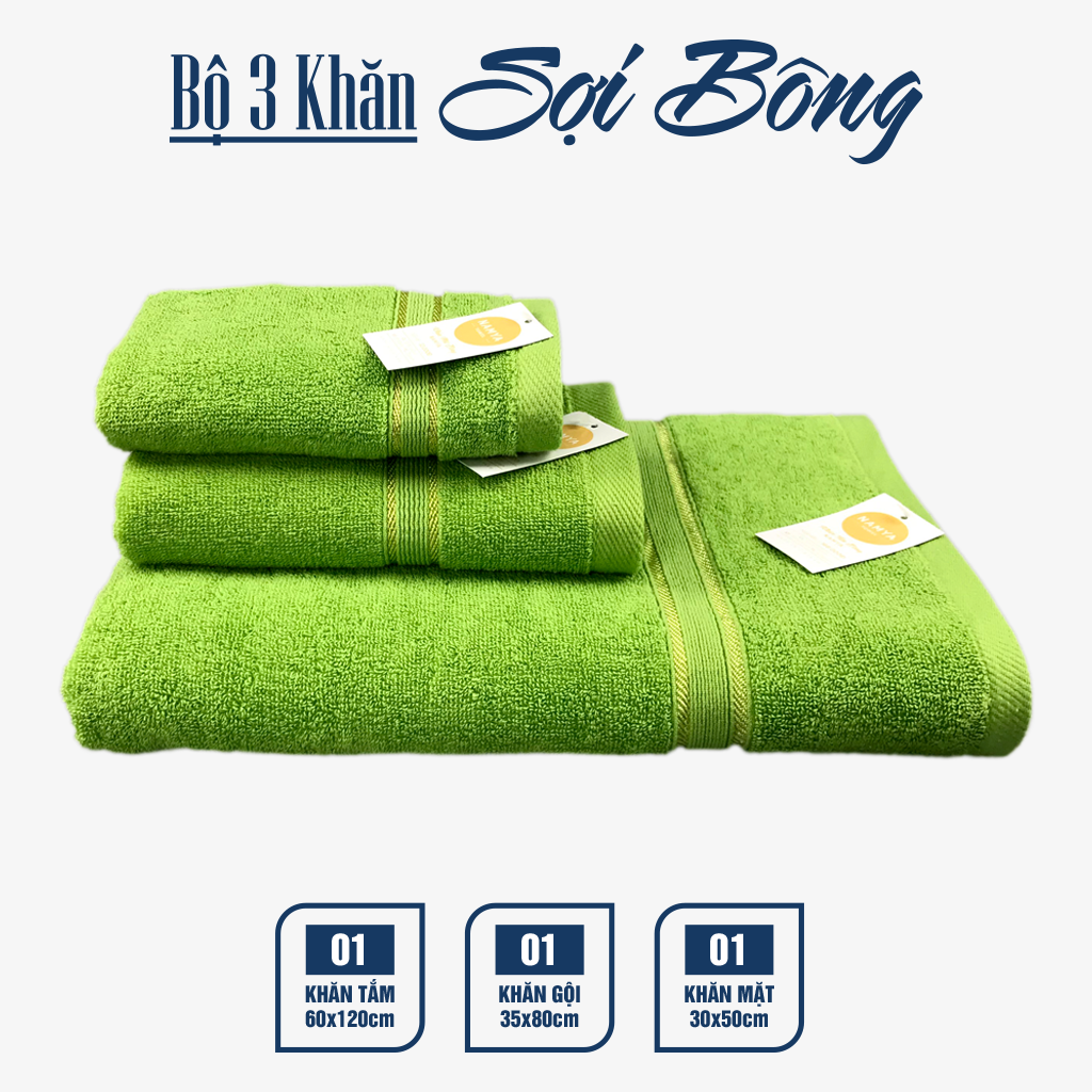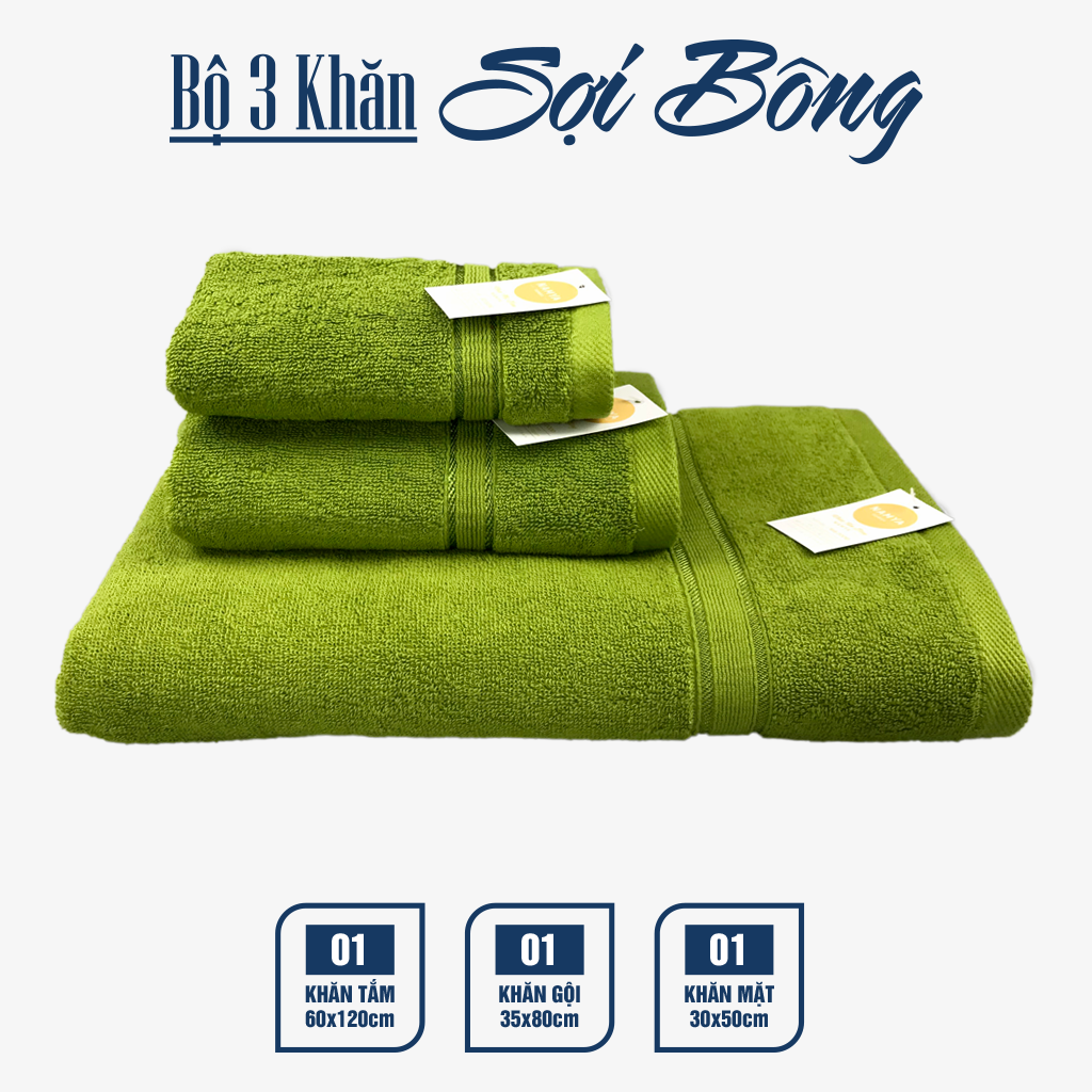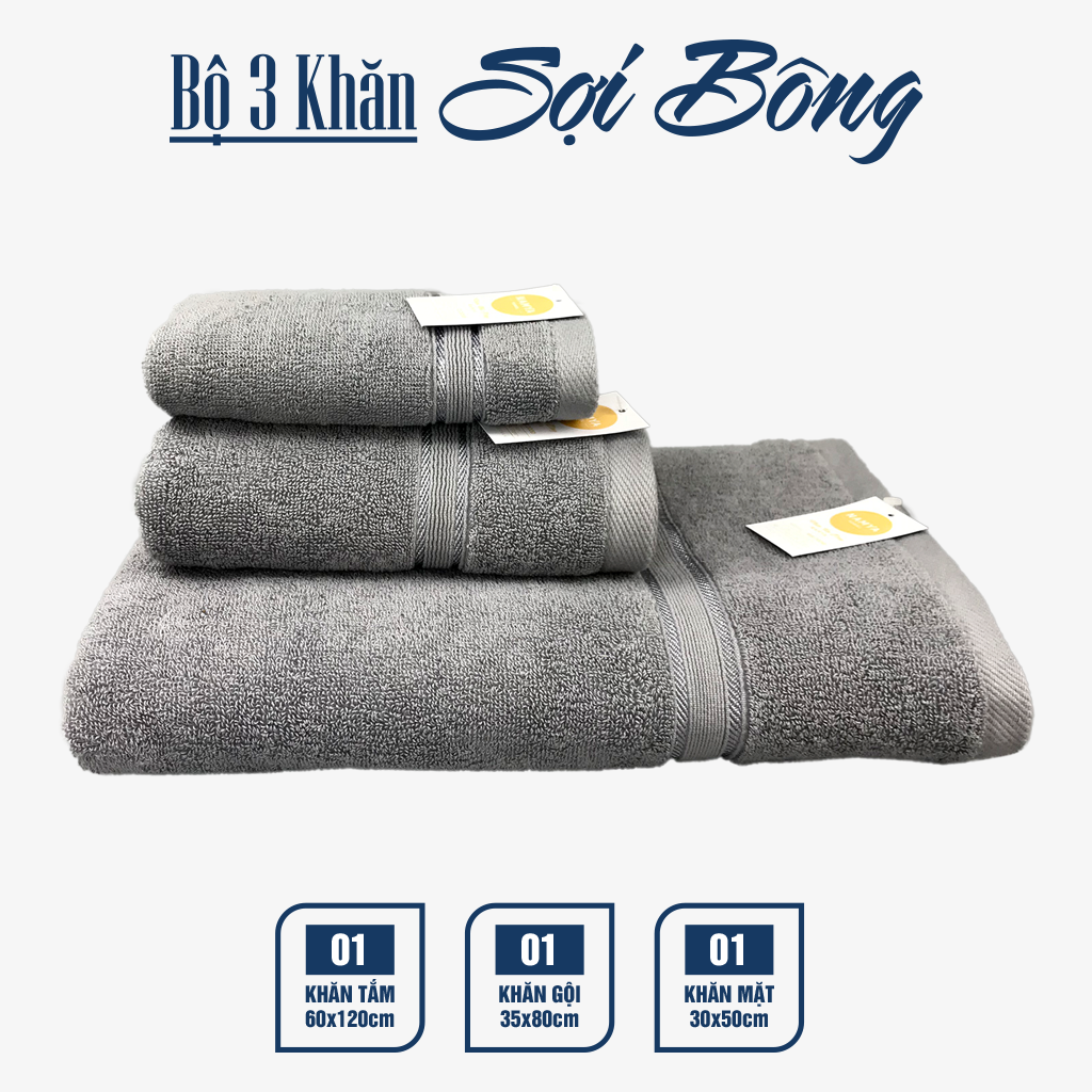 TRỌN BỘ 3 KHĂN CHO GIA ĐÌNH CHẤT LIỆU COTTON MỀM MẠI, HÚT NƯỚC, NHANH KHÔ