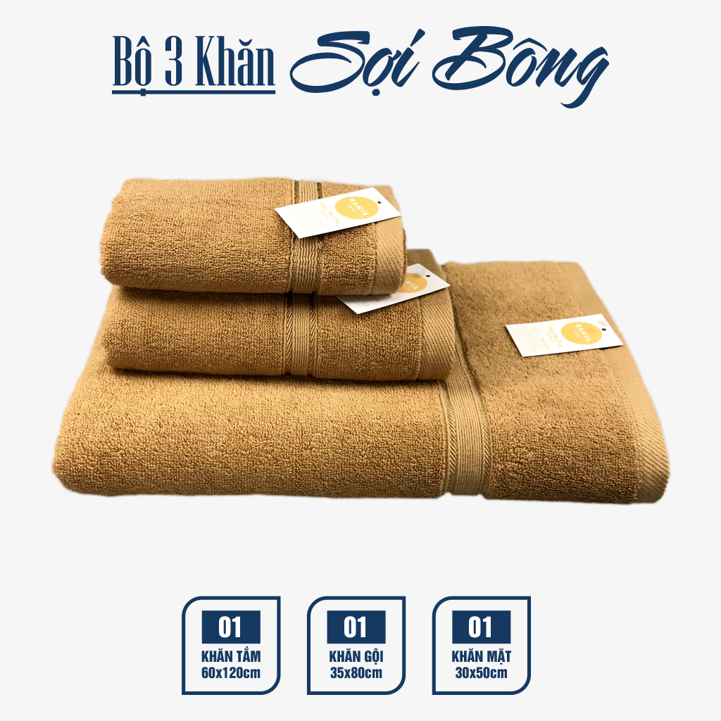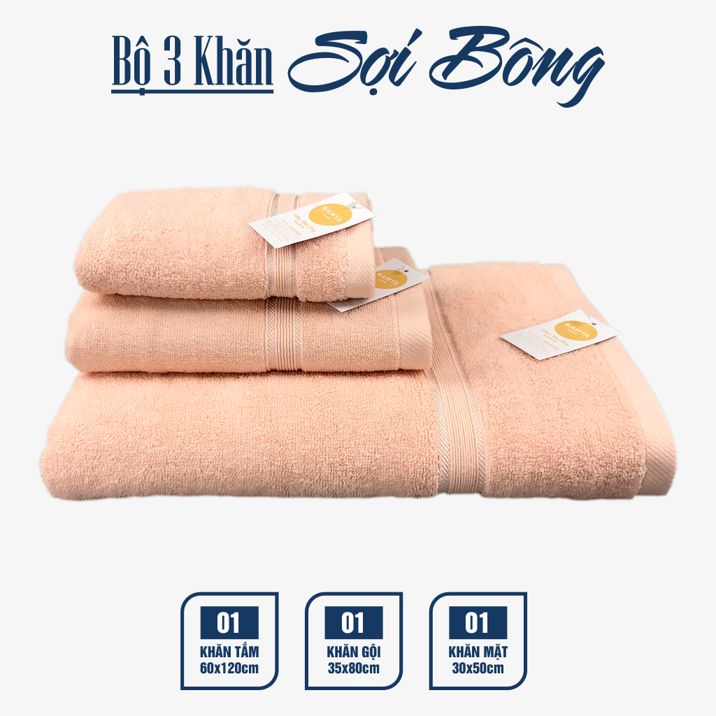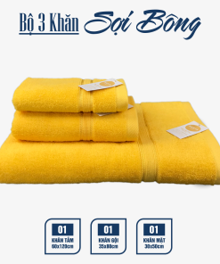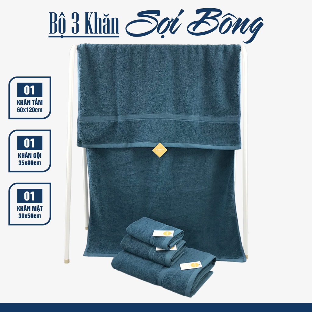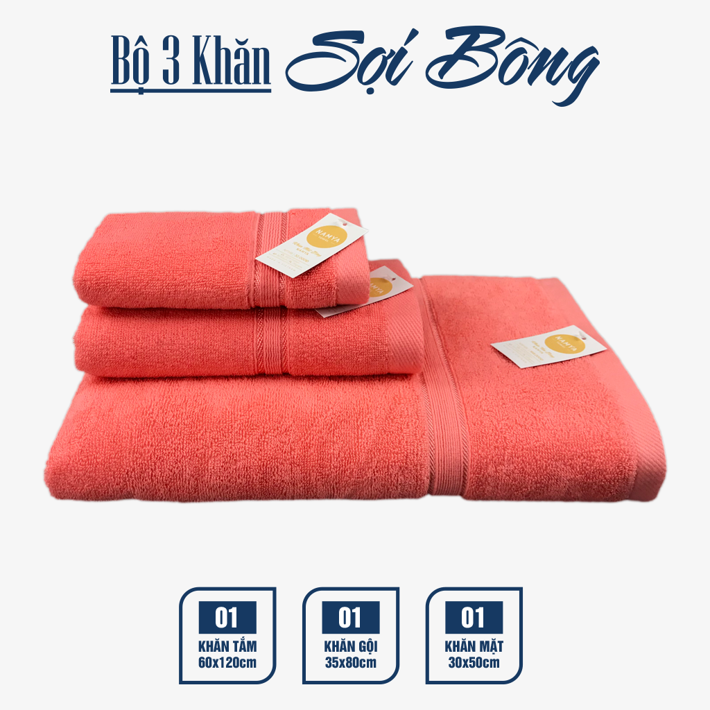 TRỌN BỘ 3 KHĂN CHO GIA ĐÌNH CHẤT LIỆU COTTON MỀM MẠI, HÚT NƯỚC, NHANH KHÔ
