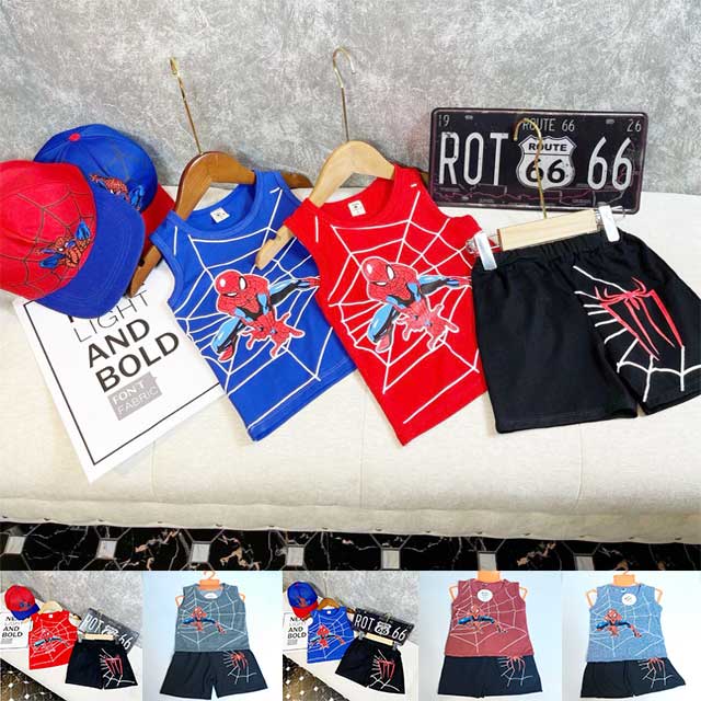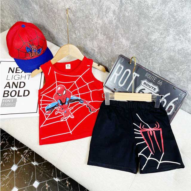 Set bộ quần áo siêu nhân nhện cho bé trai (8 – 22kg), hàng sản xuất tại Việt Nam, chất liệu mềm mịn, thoáng mát cho bé mặc cảm giác dễ chịu trong mùa hè.