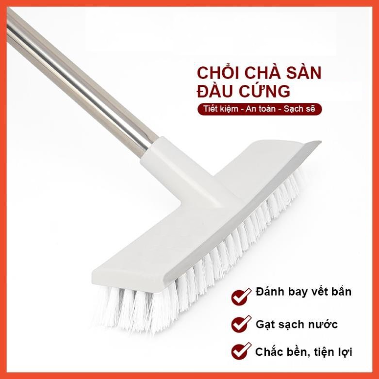 Chổi chà sàn quét nước cán dài lau nhà ,lau kính hai đầu có thiết kế nhỏ gọn giúp tiết kiệm diện tích. Đầu bàn chải có 5 hàng lông chải giúp bạn làm sạch các bề mặt nhanh chóng và dễ dàng.