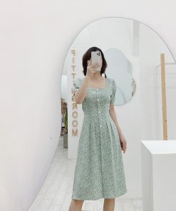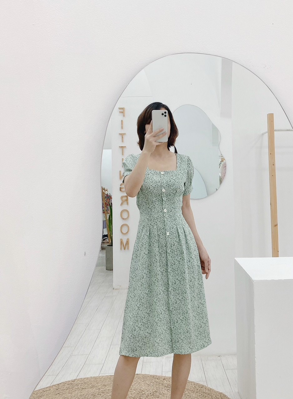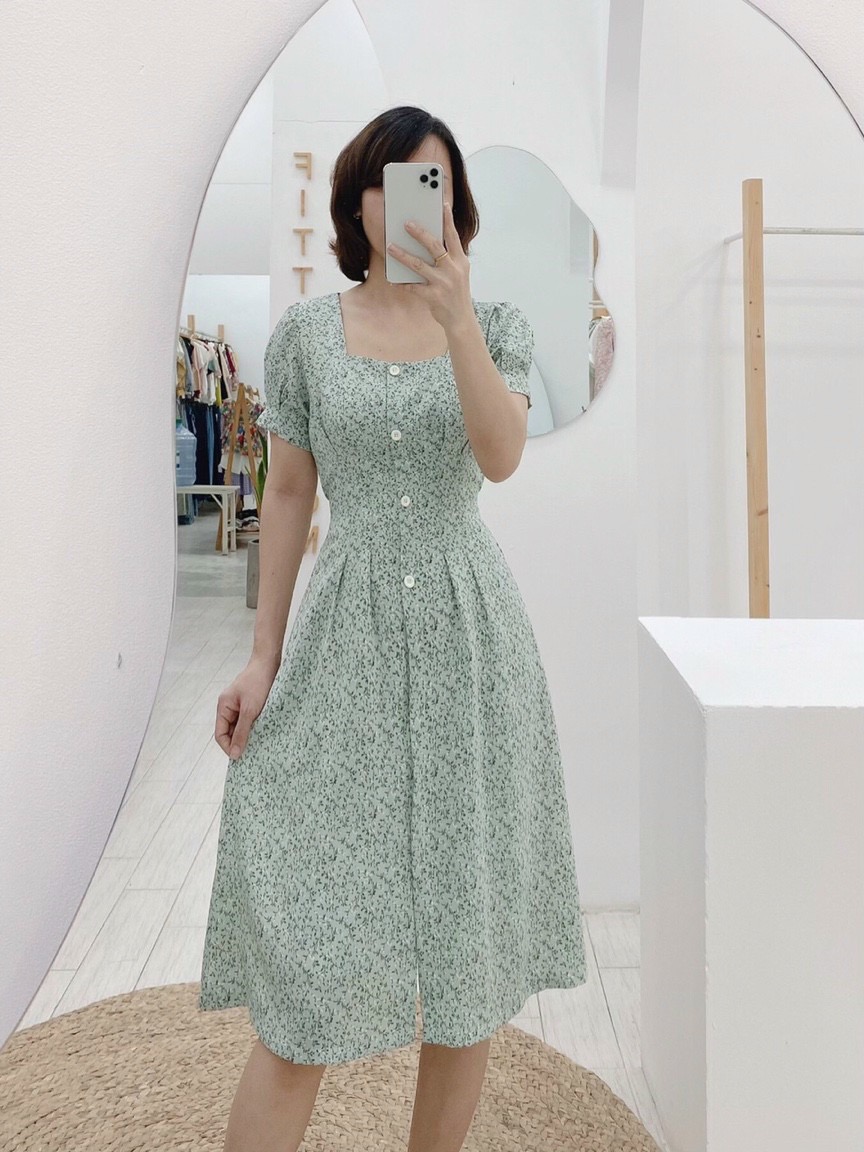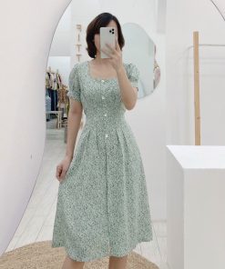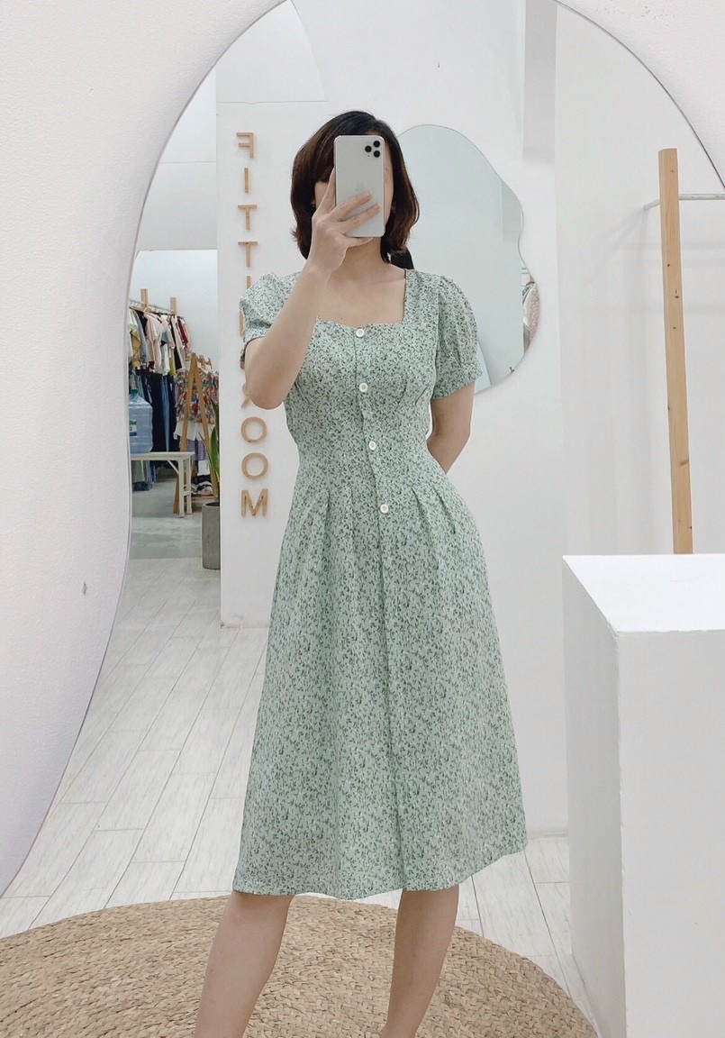 Form đầm hiện đại , thêm hàng nút bọc nhaa