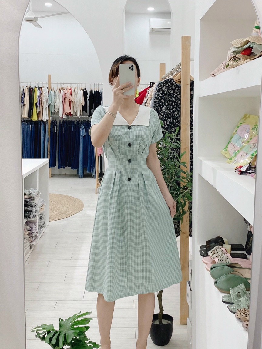 🌿Chào ngày mới bằng chiếc váy siêu xinh nha🌿--> Đầm caro nhã nhặn , dịu dàng , được thiết kế cách điệu dây buộc eo dễ mặc lắm nha