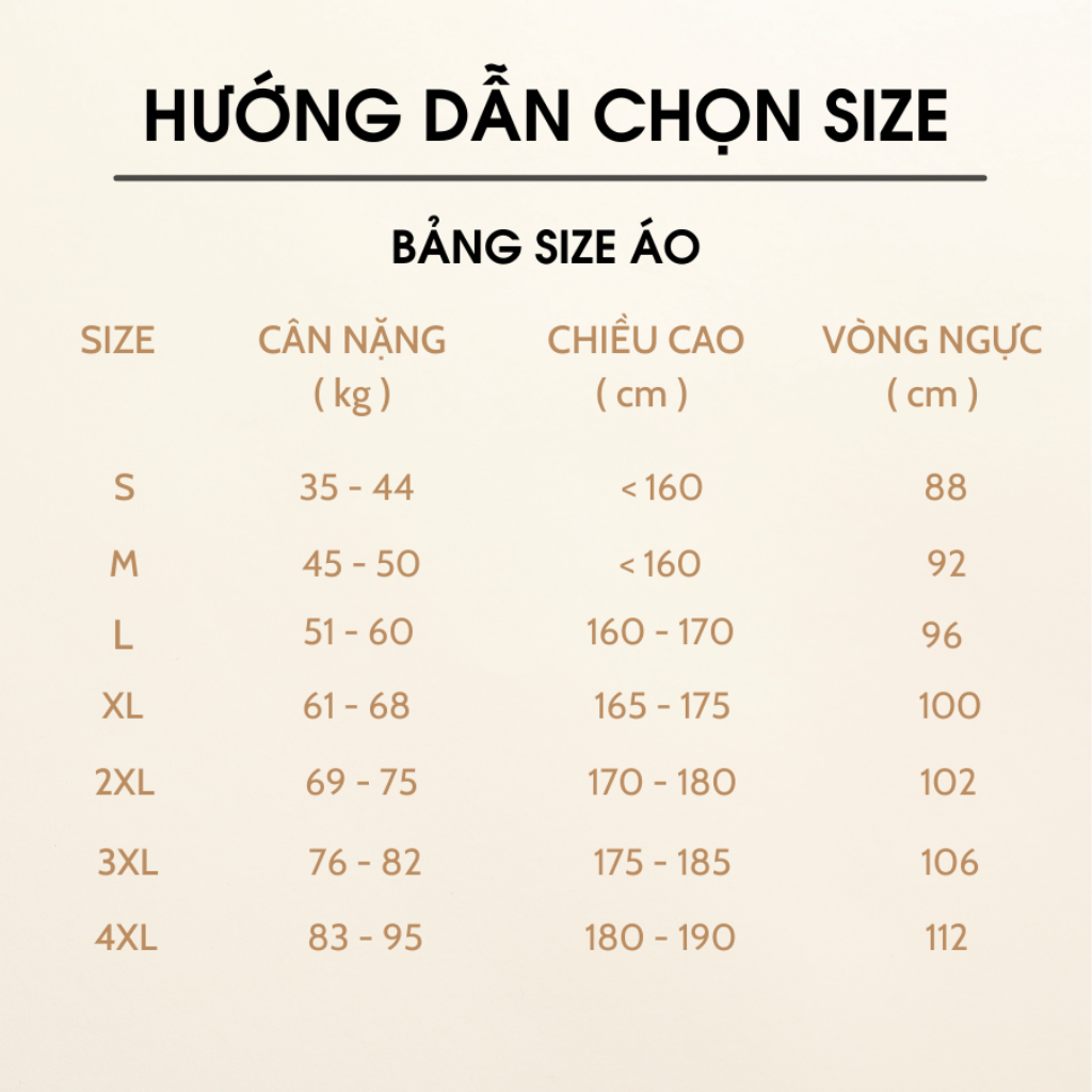 2. BẢNG SIZE ÁO THUN