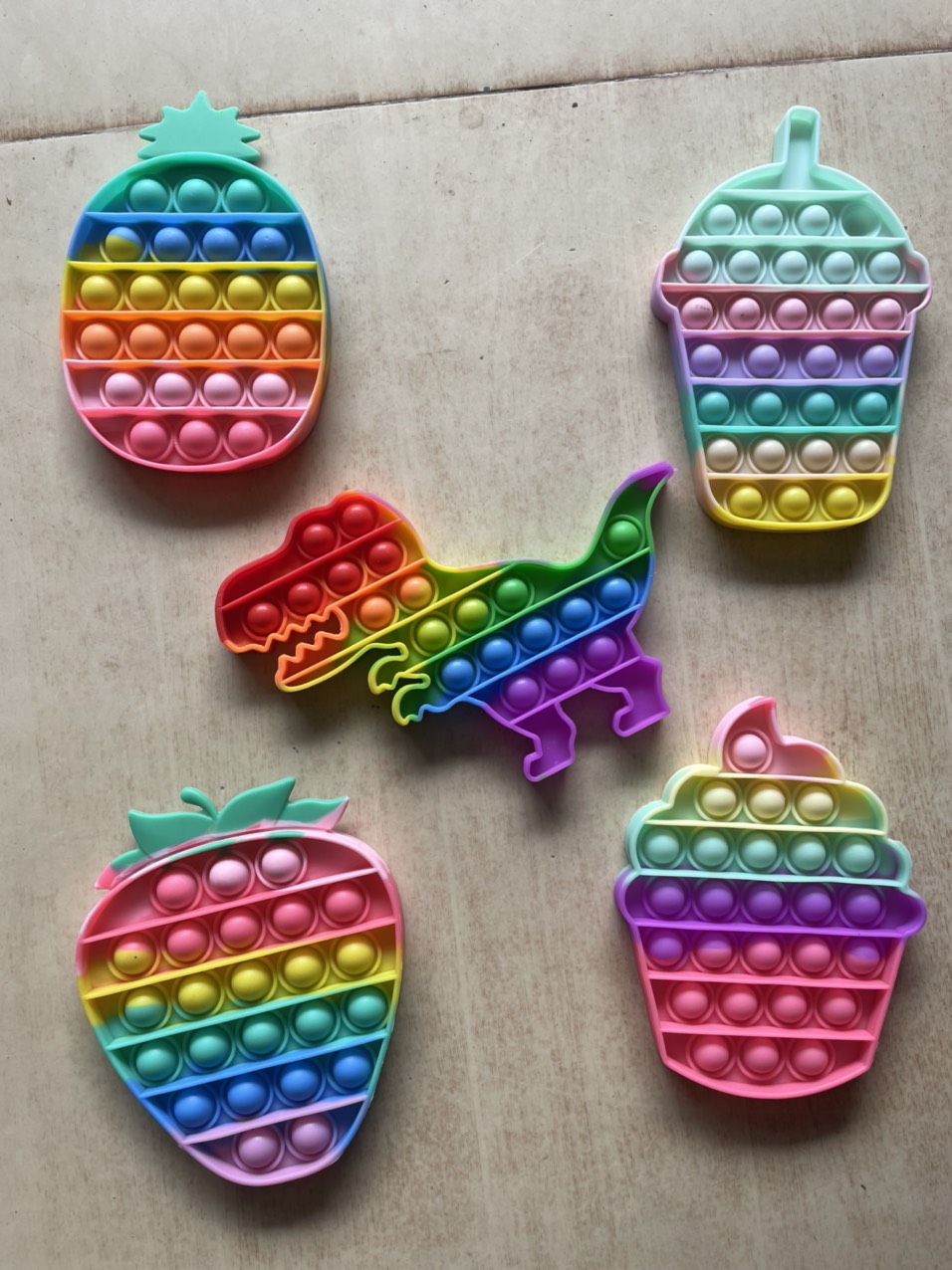 Chỉ cần nhấn các bong bóng xuống và chúng sẽ tạo ra một âm thanh pop nhẹ; sau đó lật lại và bắt đầu lại! Có thể tái sử dụng vô tận và có thể rửa sạch.