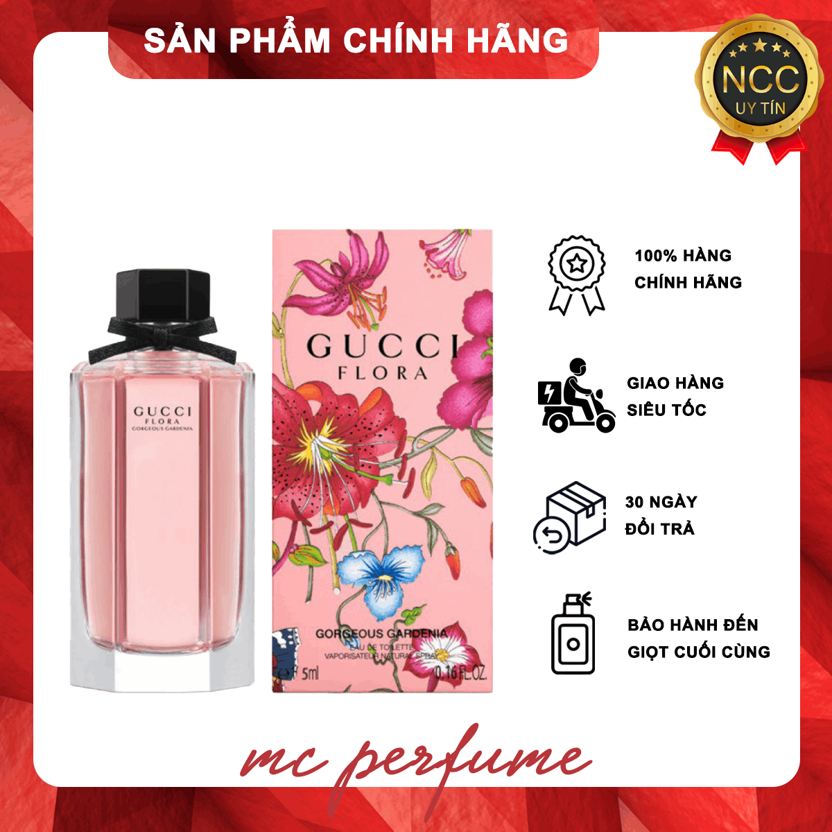 💢 💢 Flora By Gucci Gorgeous Gardenia mang một mùi thơm tinh tế, sâu sắc và cực kỳ nữ tính. Hương trái cây từ các loại quả mọng như lê xuất hiện sớm trong lớp hương đầu.