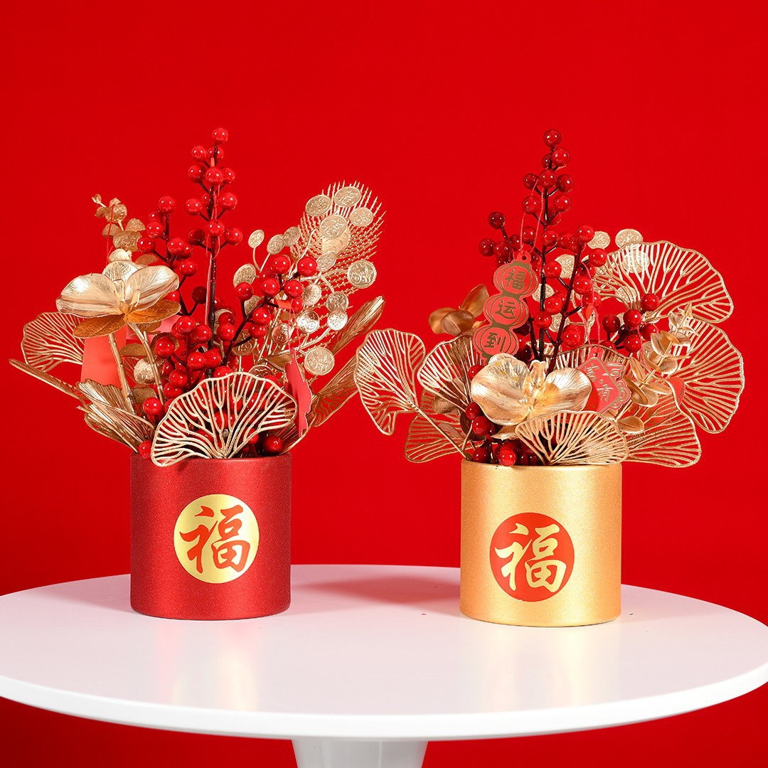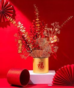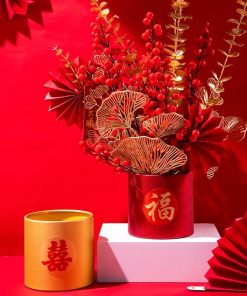 Hộp Cắm Hoa Hình Trụ Tròn Trang Trí Tết (Không kèm hoa)