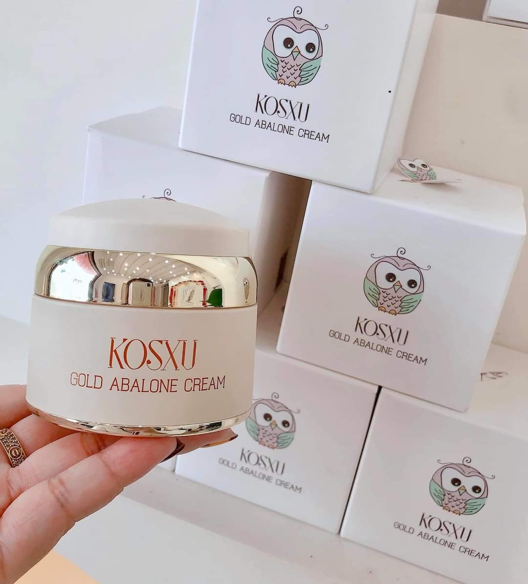 Kem dinh dưỡng bào ngư Kosxu tuyệt cú mèo là dòng chăm sóc da ban đêm trên cả tuyệt vời giúp da khỏe, căng bóng và trẻ hóa làn da, chống lão hóa. Khối lượng tịnh : 50g Tác dụng : Cung cấp khoáng chất, đàn hồi cho da, dưỡng ẩm, giúp da căng bóng, làm dịu da Thành phần : Chiết xuất từ bào ngư, hải sâm, trà xanh, vàng, cam thảo, nguyệt quế, hoa cúc Cách sử dụng : Lấy một lượng kem vừa đủ thoa đều lên mặt rồi đợi cho kem thấm sâu vào bề mặt da. Nên sử dụng vào ban đêm, sau cùng các bước dưỡng da Xuất xứ : Hàn quốc