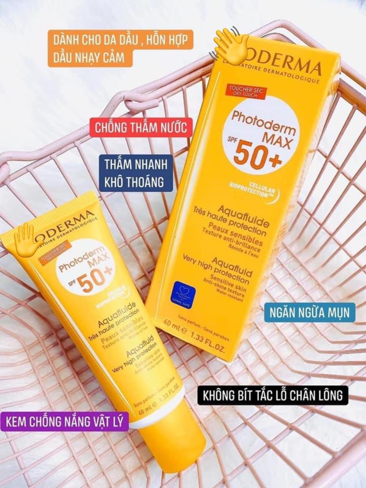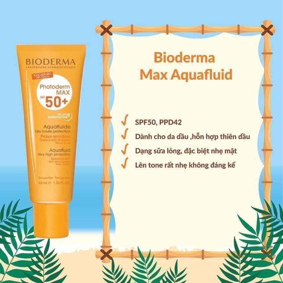 Đặc biệt dành cho ai sở hữu làn da hỗn hợp, dầu NHẠY CẢM mà budget có hạn đây ạ!!! 🔆🔆 𝐊𝐞𝐦 𝐜𝐡𝐨̂́𝐧𝐠 𝐧𝐚̆́𝐧𝐠 𝐁𝐢𝐨𝐝𝐞𝐫𝐦𝐚 𝐏𝐡𝐨𝐭𝐨𝐝𝐞𝐫𝐦 𝐌𝐚𝐱 𝐀𝐪𝐮𝐚 𝐅𝐥𝐮𝐢𝐝𝐞 𝐒𝐏𝐅 𝟓𝟎+ 🌈 🌈 Kem chống nắng #Bioderma Photoderm Max Aqua Fluide #SPF_50+ người bạn của những cô nàng da nhạy cảm, đb là hỗn hợp, dầu; thành phần lành tính đi kèm với khả năng chống nắng tuyệt đối. Xóa bỏ nỗi lo mỗi sáng mai thức dậy của những cô gái xinh tươi. 📌 𝙏𝙝𝙖̀𝙣𝙝 𝙥𝙝𝙖̂̀𝙣 𝙫𝙖̀ 𝙠𝙝𝙖̉ 𝙣𝙖̆𝙣𝙜 𝙘𝙝𝙤̂́𝙣𝙜 𝙣𝙖̆́𝙣𝙜: – Sử dụng công nghệ Cellular Bioprotection độc quyền từ Bioderma giúp bảo vệ các tế bào da khỏi các gốc tự do đồng thời kích thích khả năng “tự” phòng vệ của da dưới ánh nắng mặt trời – Chỉ số SPF 50, PPD 24 cùng khả năng chống thấm nước cao. – Không chứa hương liệu, paraben. ✅ 𝗟𝗼𝗮̣𝗶 𝗱𝗮 𝗽𝗵𝘂̀ 𝗵𝗼̛̣𝗽: 𝗱𝗮 𝗵𝗼̂̃𝗻 𝗵𝗼̛̣𝗽, 𝗱𝗮 𝗱𝗮̂̀𝘂 NHẠY CẢM ✅ 𝗞𝗲̂́𝘁 𝗰𝗮̂́𝘂: 𝗰𝗵𝗮̂́𝘁 𝗸𝗲𝗺 𝗺𝗼̉𝗻𝗴, 𝗺𝘂̛𝗼̛́𝘁, 𝗹𝗼̉𝗻𝗴 𝗻𝗵𝘂̛ 𝘀𝘂̛̃𝗮 𝗻𝗲̂𝗻 𝘁𝗵𝗮̂́𝗺 𝘃𝗮̀𝗼 𝗱𝗮 𝗰𝘂̛̣𝗰 𝗻𝗵𝗮𝗻𝗵 𝗺𝗮̀ 𝗸𝗵𝗼̂𝗻𝗴 𝗴𝗮̂𝘆 𝗻𝗵𝗼̛̀𝗻 𝗱𝗶́𝗻𝗵, 𝗰𝗼́ 𝘁𝗮̣𝗼 đ𝗼̣̂ 𝗯𝗼́𝗻𝗴 𝗻𝗵𝗲̣ 𝘁𝗿𝗲̂𝗻 𝗱𝗮 𝘀𝗮𝘂 𝗸𝗵𝗶 𝘁𝗵𝗼𝗮.