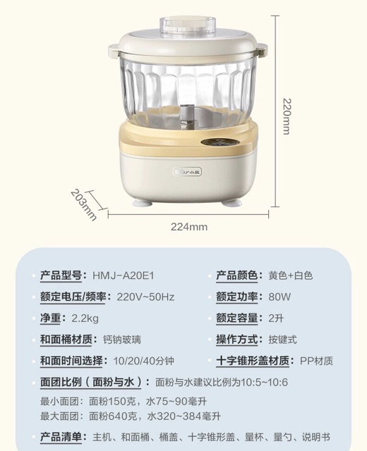 Máy nhồi bột thế hệ mới của Bear với kích thước siêu nhỏ xinh, phù hợp với các bạn có nhu cầu sử dụng ít, làm bánh cho bé ăn sáng cũng có thể sử dụng máy này rất hợp lý.️ Thông số kỹ thuật: