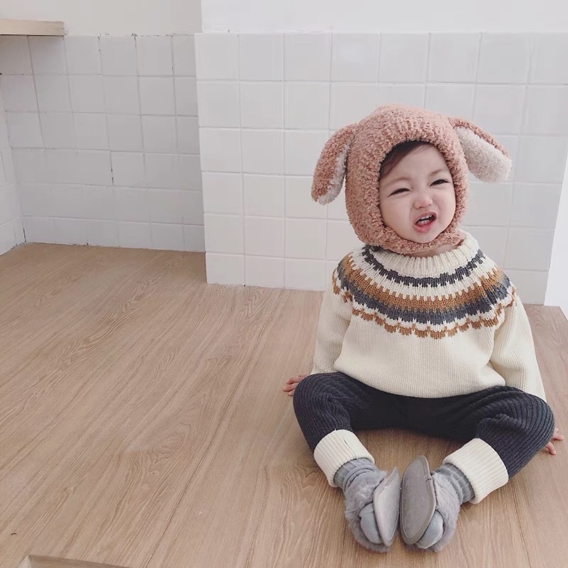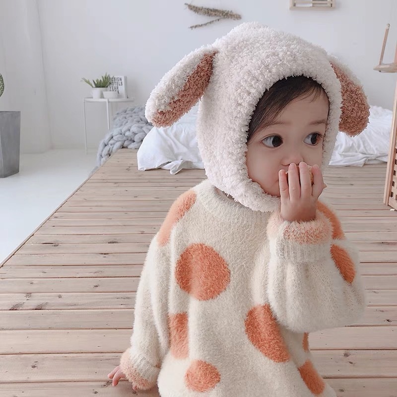 Mũ Len Lông Cừu Tai Thỏ Đáng Yêu Cho Bé Trai Bé Gái 6-36 Tháng – SABOMART