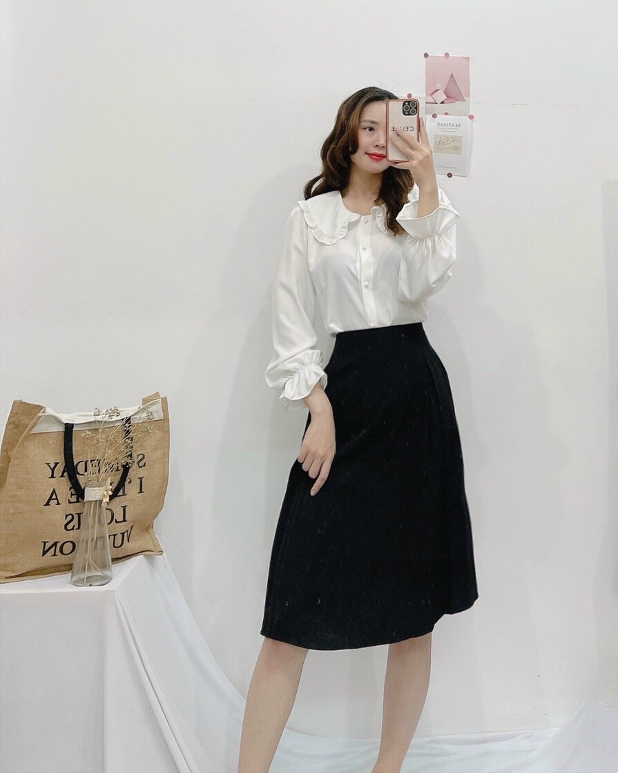 🌵Sét chân váy đen áo trắng bèo cổ cách điệu , style nhẹ nhàng tiểu thư