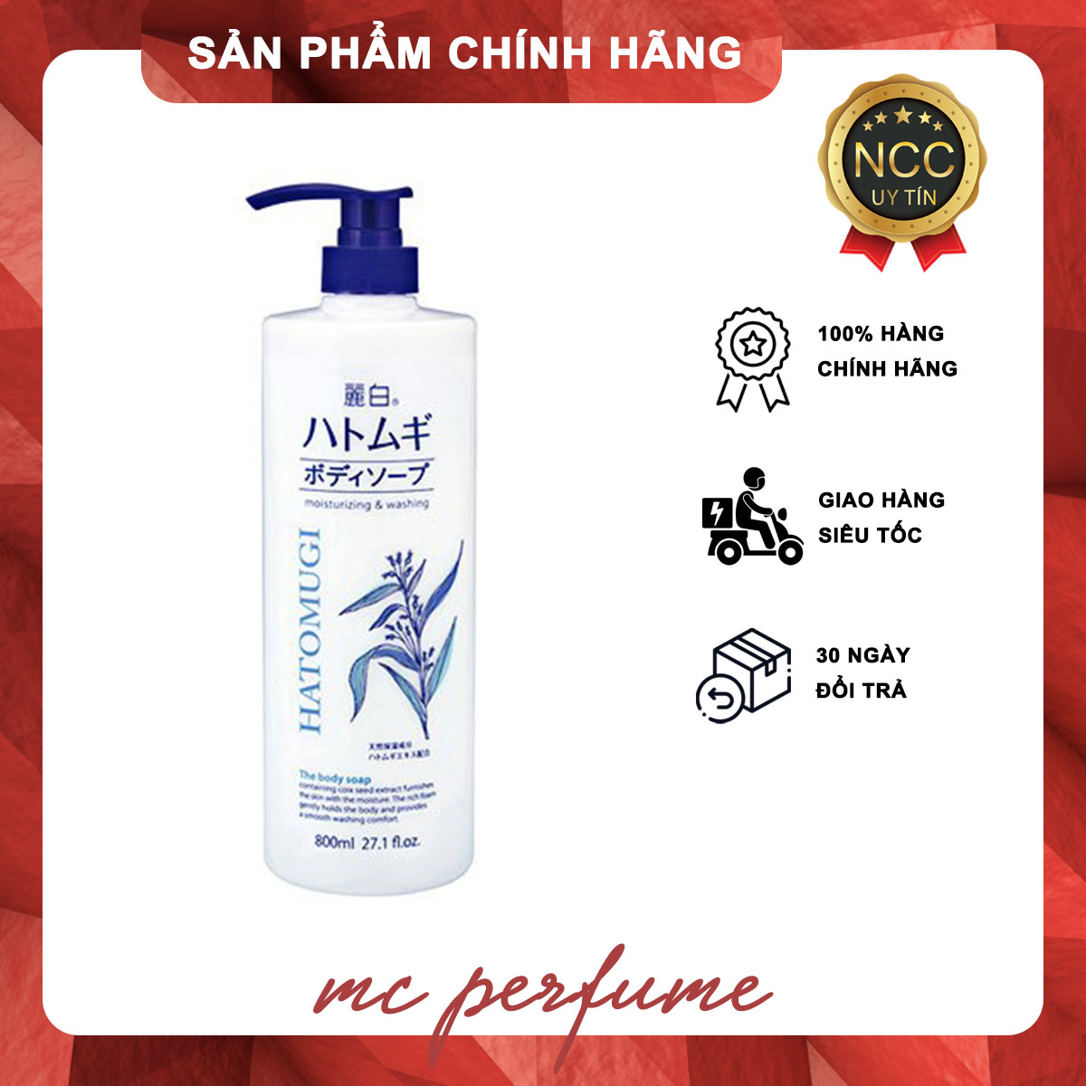– Sữa tắm dưỡng ẩm và làm sáng da – Reihaku Hatomugi Body Soap có chứa thành phần tự nheien cho làn da mịn màng đến bất ngờ. Dùng sữa tắm để loại bỏ mồ hôi, bã nhờn cho làn da luôn sạch sẽ.